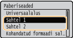 ![]() ![]() Salvestades sageli kasutatavad paberiformaadid nuppude <S1> kuni <S3> alla, saate need laadida ühe puutega. Kohandatud paberiformaadi salvestamine