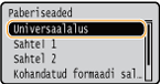 ![]() ![]() Salvestades sageli kasutatavad paberiformaadid nuppude <S1> kuni <S3> alla, saate need laadida ühe puutega. Kohandatud paberiformaadi salvestamine