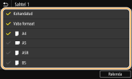 Hoolitsege selle eest, et märkeruudud on valitud ainult sageli kasutatavate paberisuuruste jaoks.