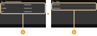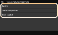 Seade <Peenhäälestus> või <Tihedus (peenhääl.)> abil saate iga värvi tooneritiheduse seada ühele kolmest tihedusastmest: suur tihedus, keskmine tihedus ja väike tihedus.
