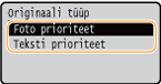 Sõltuvalt prinditavast pildist saate valida originaali tüübi.