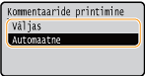 Kui valite <Sees>, toimub printimine tooneri säästurežiimil. Kui soovite enne suure töö printimise jätkamist kontrollida lehtede paigutust või muid väliseid omadusi, valige <Sees>. Sätte kirjelduse leiate teemast
