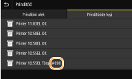 Tõrke ilmnemise korral (näiteks printimine ei õnnestu või I-faksi ei saa vastu võtta) kuvatakse vastav tõrkekood tööde logi kuval kolmekohalise numbrina. Tõrkekoodide põhjuste ja lahenduste kohta lugege järgmist teavet. Valige tööde logi kuval