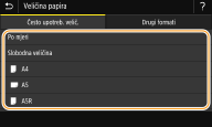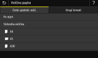 ![]() ![]() Ako registrirate veličine papira koju često koristite na gumbima od <S1> do <S3>, možete ih odabirati dodirom. Registriranje prilagođene veličine papira