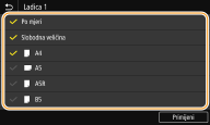 Odaberite željeni izvor papira za koji želite ograničiti prikaz veličina papira.