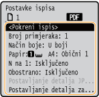 Ako je riječ o PDF datoteci, možete ispisati 9 ili 16 stranica slikovnih podataka na jednu stranu jednog lista papira tako da odaberete mogućnost <N na 1> koja se nalazi u odjeljku <Post. detalja za PDF>.