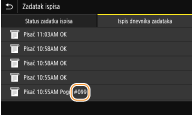 Ako se pojavi pogreška kao što je neuspješni ispis ili pak nemogućnost primanja I-faksa, odgovarajuća šifra pogreške pojavit će se na zaslonu zapisnika poslova u obliku troznamenkastog broja. Provjerite sljedeće da biste pronašli uzroke i rješenja za svaku šifru pogreške. Detalje o zaslonu zapisnika poslova potražite u odjeljku