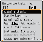 Če izberete <ČB>, začnete črno-belo tiskanje. Če izberete <Barvno>, začnete barvno tiskanje.