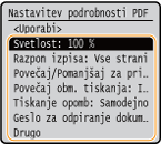 Za datoteko PDF lahko natisnete 9 ali 16 strani slikovnih datotek na eno stran lista papirja tako, da uporabite možnost <N na 1> v razdelku <Nast. podrobn. PDF>.