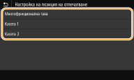 Ако документите се разпечатват с отместване от центъра или извън печатното поле, настройте позицията на отпечатване. Можете да настроите позицията на отпечатване поотделно за всеки източник на хартия. Можете да регулирате позицията на отпечатване в диапазона -5,0 до +5,0 мм в стъпки от по 0,1 мм.