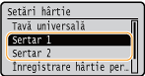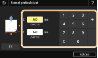 ![]() ![]() Dacă înregistraţi formatul de hârtie pe care îl utilizaţi frecvent pe butoanele <S1> – <S3>, puteţi să le apelaţi cu o singură atingere. Înregistrarea unui format de hârtie personalizat