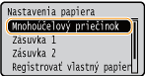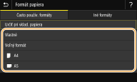 ![]() ![]() Ak uložíte často používanú veľkosť papiera na tlačidlá <S1> až <S3>, môžete ju vyvolať jedným dotykom. Uloženie vlastnej veľkosti papiera