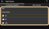 ![]() ![]() Sık kullandığınız kağıt boyutlarını <S1> ile <S3> arasındaki düğmelere kaydederseniz, bunları tek bir dokunuşla çağırabilirsiniz. Özel Bir Kağıt Boyutu Kaydetme