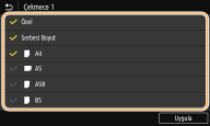 Seçilmeyen kağıt boyutları, kağıt boyutu ayarı seçim ekranında <Diğer Boyutlar> öğesi seçilerek görüntülenebilir.
