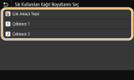 Kağıt boyutu ayarının seçimi için ekranda yalnızca sık kullanılan kağıt boyutlarının gösterilmesini sağlayabilirsiniz.