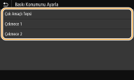 Kağıt kaynağından bağımsız olarak tüm yazdırma işleri için yazdırma konumunu ayarlamak için işletim panelindeki ayar menüsünde <Fonksiyon Ayarları> öğesini kullanabilirsiniz. Yazdırma konumu 0,5 mm artışlarla -50,0 mm ile +50,0 mm arasında ayarlanabilir. <Kısa Kenar Uzunluğu/Uzun Kenar Uzunluğu>