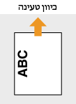 בעת שימוש בנייר שכבר מודפס עליו לוגו, שים לב לכיוון הנייר בעת טעינתו. טען את הנייר כראוי כך שההדפסה תבוצע על הצד הנכון של הנייר עם הלוגו.