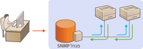 עם SNMP, ניתן לקבל את נתוני ניהול המדפסת, הכוללים את פרוטוקולי ההדפסה ויציאות המדפסת, ולעקוב אחריהם באופן שוטף.