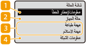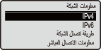 يعرض إعدادات الشبكة مثل عنوان IP الخاص بالجهاز وحالته مثل حالة اتصالات الشبكات المحلية اللاسلكية.