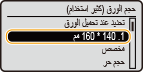 تظهر أحجام الورق التي تم تسجيلها في الإجراء أعلاه في شاشة تحديد حجم الورق الخاصة بدرج الورق أو علبة الورق متعددة الأغراض.