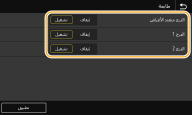 حدد دائمًا <تشغيل> على الأقل للدرج <الدرج 1> أو <الدرج 2>. إذا قمت بتحديد <إيقاف> لكليهما، فلن يمكنك عندئذٍ إنهاء إجراء الإعداد.