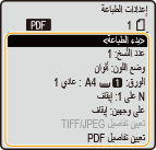 ![]() بالنسبة لملف بتنسيق PDF، يمكنك طباعة ٩ أو ١٦ صفحة من بيانات الصور على وجه واحد من الورقة باستخدام <N على 1> أسفل <تعيين تفاصيل PDF>.