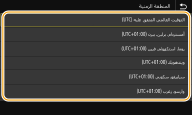 اضبط <المنطقة الزمنية> قبل ضبط التاريخ والوقت الحاليين. إذا تم تغيير الإعداد<المنطقة الزمنية> في وقت لاحق، يتم تغيير التاريخ والوقت الحاليين أيضًا وفقًا لذلك.