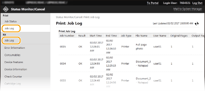 Es mostra la mida i el tipus de paper per a l'origen del paper, el número de model del cartutx de tòner, etc. També podeu fer clic a [Check Consumables Details] a la pàgina del Portal (pàgina principal) perquè es mostri aquesta pàgina (