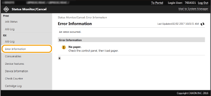 Клацніть елемент [Job Number] для документів, завдання для яких призупинено, і захищених документів, щоб переглянути детальні відомості. Можна перевірити ім’я користувача та кількість сторінок у надрукованому документі.