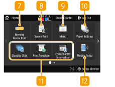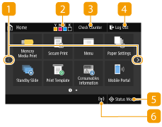 <Status Monitor>Натисніть цю клавішу, щоб перевірити стан друку, переглянути журнал використання апарата й параметри мережі, зокрема IP-адресу апарата. Можна також перевірити стан апарата, наприклад, залишок паперу й тонера в картриджі, або наявність помилок. Екран <Status Monitor>