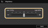 Можна змінити різні параметри функціональності, наприклад яскравість екрана: <Accessibility>