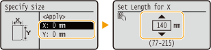 Виберіть <X> або <Y> і введіть довжину кожної сторони за допомогою цифрових клавіш.