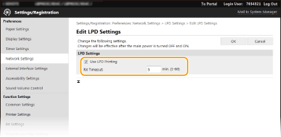 Установіть значення як час очікування перезапуску для приймання даних. Якщо приймання даних не відновлюється протягом указаного часу, друк скасовується. |