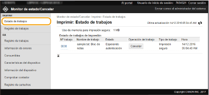Puede eliminar un trabajo haciendo clic en [Cancelar].