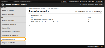 Consulta del número total de páginas impresas