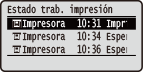 Muestra el estado actual del elemento seleccionado. La pantalla <Estado trab. impresión> se muestra a continuación como ejemplo.