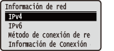Muestra las opciones de configuración de red, como la dirección IP del equipo, así como el estado, como por ejemplo el de las comunicaciones de red inalámbrica.