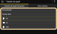 Cuando se carga papel de tamaño personalizado (Modelo con pantalla táctil)