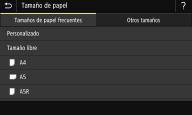 ![]() ![]() Si registra el tamaño de papel que utiliza con más frecuencia en los botones <S1> a <S3>, puede recuperarlo con una tecla abreviada. Registro de tamaños de papel personalizados