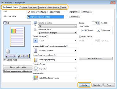 Especifique las opciones de impresión según sea necesario y haga clic en [Aceptar].