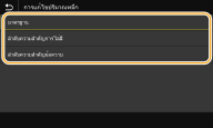 คุณสามารถระบุการตั้งค่าการพิมพ์ เช่น จำนวนสำเนาหรือการพิมพ์แบบ 1 ด้าน/2 ด้าน จากแอพพลิเคชั่นหรือไดรเวอร์เครื่องพิมพ์ อย่างไรก็ตาม การตั้งค่า <แทนที่ขนาดกระดาษ> จะสามารถระบุได้บนเครื่องเท่านั้น