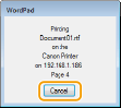 Hủy từ ứng dụngTrên một số ứng dụng, một màn hình như dưới đây sẽ xuất hiện. Bạn có thể hủy bỏ in bằng cách bấm vào [Cancel] (Hủy bỏ).