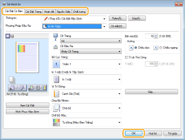 Chỉ định cài đặt in khi cần thiết, và nhấp vào [OK].