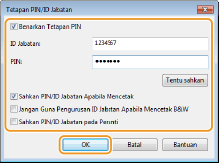 Dalam usaha untuk menghantar kerja dari komputer apabila Pengurusan ID Jabatan dibolehkan, anda perlu memasukkan ID dan PIN yang betul (