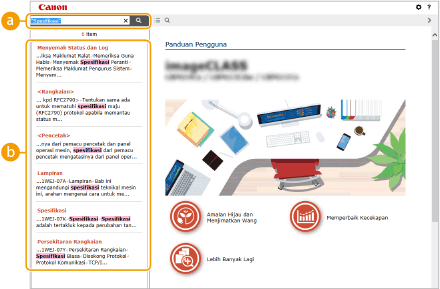 Klik untuk memaparkan maklumat tentang cara untuk melihat Panduan Pengguna, bagaimana untuk melakukan carian, dan maklumat lain.
