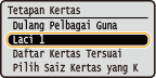 ![]() ![]() Jika anda mendaftar saiz kertas yang kerap anda guna pada butang <S1> kepada <S3>, anda boleh memanggilnya dengan satu sentuhan. Mendaftar Saiz Kertas Tersuai