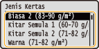 Pada model LCD hitam dan putih, teruskan memilih jenis kertas.
