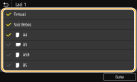 Anda boleh memastikan bahawa hanya saiz kertas yang kerap digunakan akan ditunjukkan dalam skrin untuk memilih tetapan saiz kertas.