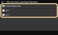 Saiz kertas yang tidak dipilih boleh dilihat dengan memilih <Saiz Lain> dalam skrin pemilihan tetapan saiz kertas.
