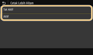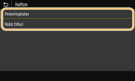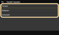 Anda boleh guna <Laras Halus> atau <Kpadatn (Laras Halus)> untuk melaraskan kepadatan toner setiap warna kepada tiga peringkat kepadatan: kepadatan tinggi, kepadatan sederhana, kepadatan rendah.